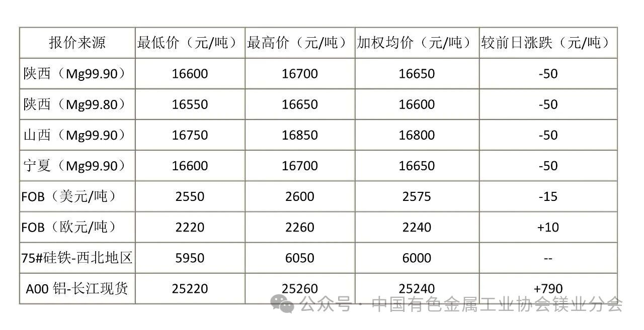 1. 報價原鎂均為符合GB/T 3499-2023《原生鎂錠》標準相應牌號質量要求的鎂錠;